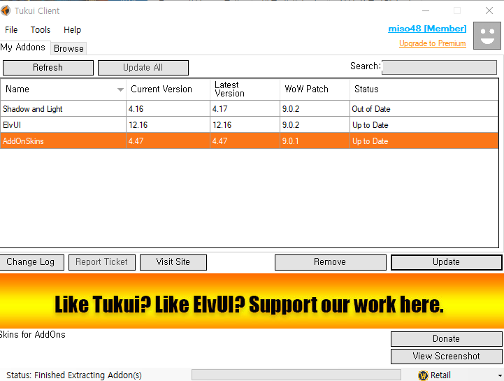 또는 저처럼 ElvUi를 쓰시는 유저는 tukui client에 가입해서 이 애드온 통합프로그램을 통해 간편하게 최신 업데이트를 관리해주실 수 있어요.