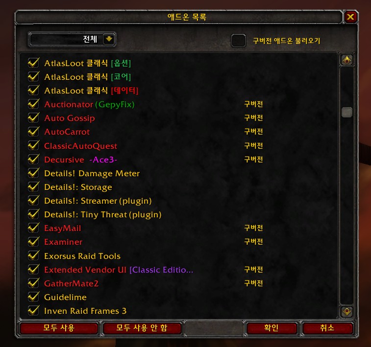 어둠땅에서 와우를 즐기실 때 애드온은 특별히 필요하지 않을 수 있습니다만, 클래식은 정말 아!!!무것도 없습니다. 무조껀 설치하세요. 애드온은 말 그대로 Add On 게임입니다. 게임의 재미를 더 할 수 있는 그런 장치라는 소리죠. 더불어 화면 또한 내가 좋아하는 식으로 바꾸어 더욱 재미를 즐길 수 있도록 하는거죠.
