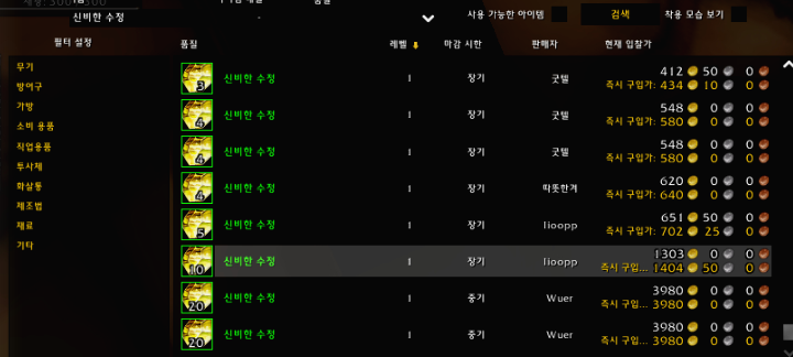 신비한수정 5개 정의의보주 1개 마력의 결정체 2개