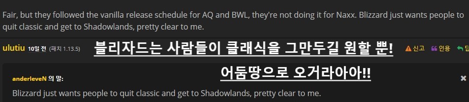 12월 3일 드디어 클래식의 최종 보스 던전인 [ 낙스라마스 ]가 열린다고 합니다! 이에 사람들 반응이 아주 핫했습니다. 안퀴가 나온 지 얼마나 되었다고 벌써 낙스가 열리는 거야? 하며 웅성대는 유저들 사이에서 블리자드가 유저들이 클래식을 빨리 마무리하고 어둠땅으로 넘어오길 바라기에 낙스가 빨리 나왔다라고하죠. 자꾸 낙스마라스라하네..!!